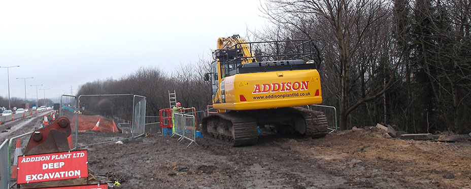 PROJECT SUMMARY The proposal of the A1 Coal House to Metro Centre scheme was to increase the lane capacity of 4 miles of the A1 in each direction. The scheme was built within the existing highway boundary and cost in the region of £60 million. The scope of our work was to install a new surface water network to service the new road layout discharging into existing outfalls. The new network ranged from pipes 150mm diameter to twin 900s. Numerous hydrobrake chambers were required, the biggest being 3m in diameter. Limited working room was available in the existing verges which made the job particularly challenging. A full time distribution gang was required to distribute plant and materials across the site. Our contract included the supply of all aggregates and also the disposal of excavated material off site. Whilst carrying out the new drainage installation Addison Plant were also given an order to rectify a long list of defects to the existing network. This was done by a variety of methods, dig down and repair where possible or carry out remote patch repair where there were access issues. Where the existing pipes were badly damaged an Ultracoat system was used to repair and reinforce the pipe. The majority of the work was carried out during day shifts with the remaining works including drainage crossings to main line carried out at night.