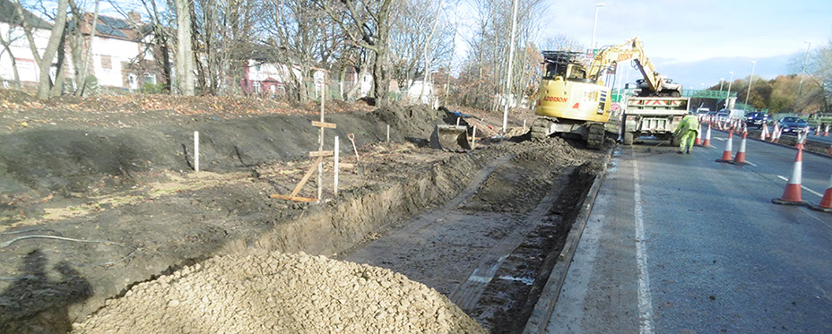 PROJECT SUMMARY The main focus of the £7.5m Lindisfarne scheme is the widening of both the Lindisfarne and John Reid Road roundabouts and the dual carriageway between them from two to three lanes in both directions. This includes new drainage and ducting. The junction had suffered severe flooding recently and to alleviate this a 1,125m3 attenuation tank was installed 6m deep.