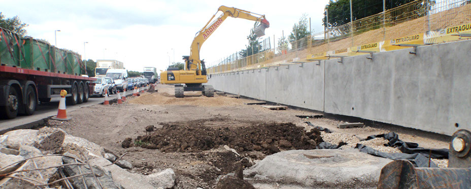 PROJECT SUMMARY The scheme covered widening the A19 north and southbound approaches from 2 lanes to 4 with a 100 metre long retaining wall adjacent to the A19 southbound to facilitate the widening. A1058 coast road eastbound off slip was widened from 2 lanes to 3 lanes with all footpaths realigned as part of the works. Approximately 90% of the work was carried out on night shifts between 8.00pm and 5.00am on a 6 night per week basis. We worked closely with the T.S.C.O to plan lane closures which changed nightly. We carried out all earthworks on nights which included disposal off site of 8000m3 material. The drainage works included Attenuation Tanks, petrol interceptors and the connection to existing NWL drains and manholes.