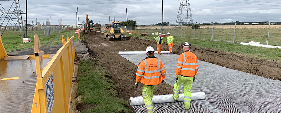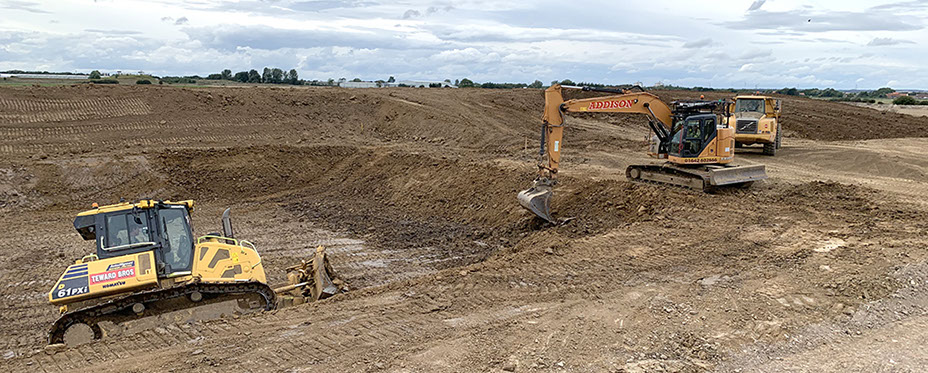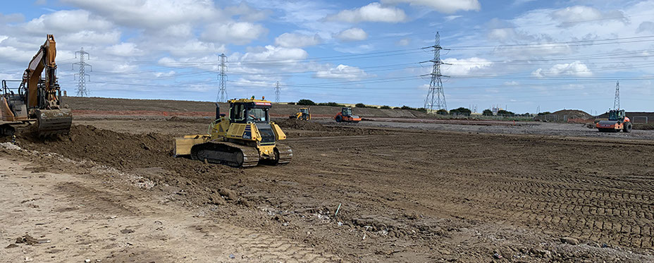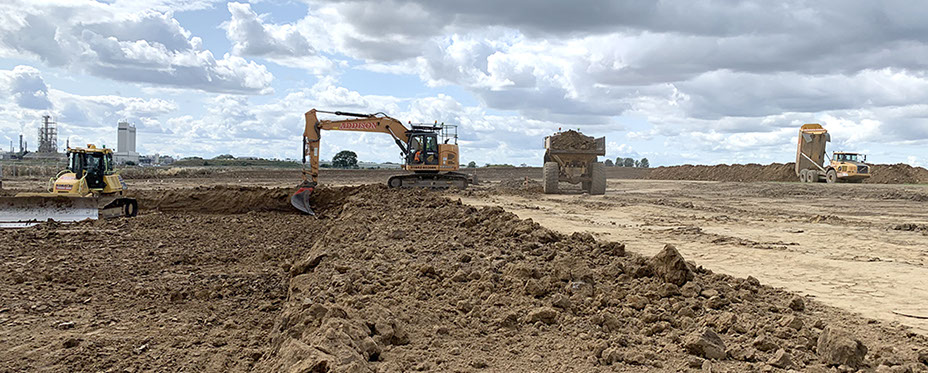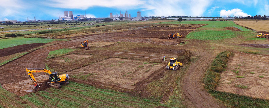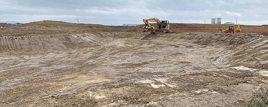 PROJECT SUMMARY We were awarded the enabling works for a gas-powered power station at Saltholme next to an RSPB site. The site itself brought about a number of challenges. It was a known site for archaeology, so the full site strip was witnessed by archaeologists. There were also 3 sets of overhead high voltage power lines and 3 high pressure underground gas mains on the site. Our work consisted of: • Setting up goal posts and complying with GS-6 • Providing temporary protection for the gas mains • Fencing off the full site • Strip 3,700m3 of topsoil and bund on site • Excavate 16,000m3 and bund on site • Import 31,000 tonne of stone • Cast 3 no reinforced protection slabs • Design and install bespoke culvert and headwalls • Excavate ponds and drainage ditch • Form new entrance and tie in to the A1185